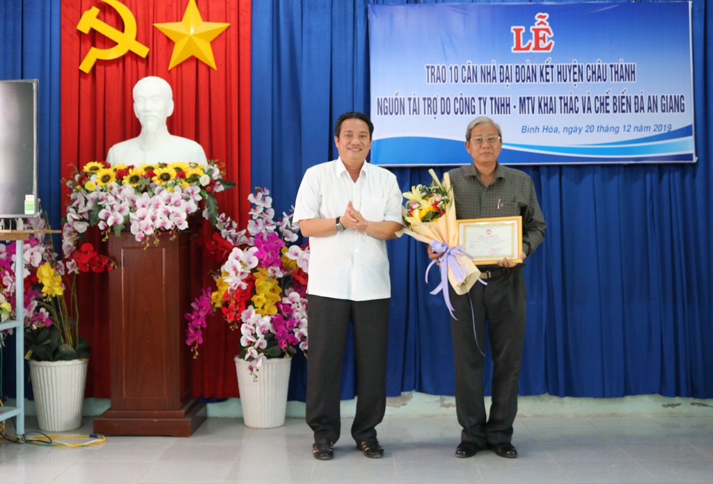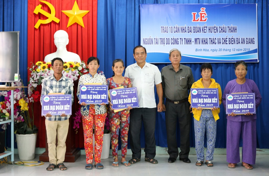 - Chiều 20-12, UBMTTQ Việt Nam huyện Châu Thành phối hợp Công ty TNHH MTV Khai thác và Chế biến đá An Giang bàn giao 10 căn nhà Đại đoàn kết cho hộ nghèo các xã: Bình Hòa, Bình Thạnh, Vĩnh Thành, Vĩnh Hanh, Vĩnh Nhuận, Vĩnh An và Tân Phú.